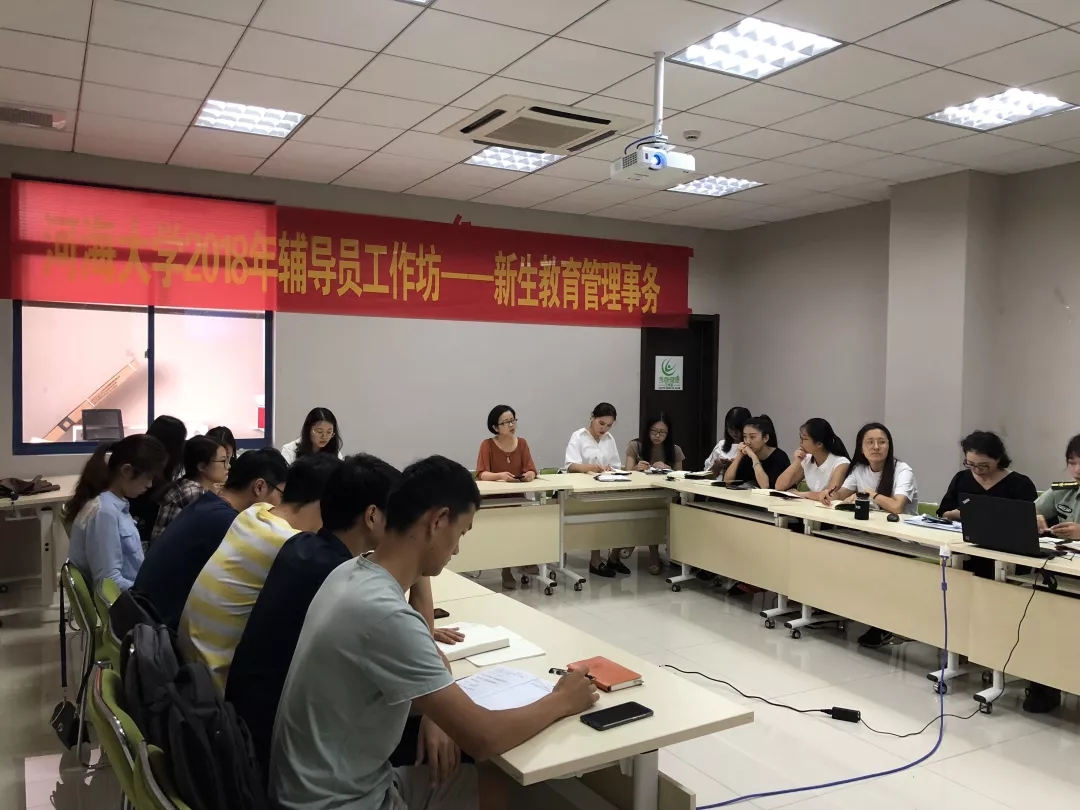 9月18日,在繁忙紧张的军训工作之余,学生处组织开展了2018年辅导员工作坊:新生教育管理事务专题培训。旨在促进新进辅导员全面熟悉学生教育管理事务,掌握工作方法,提升工作能力。培训会主要以经验交流分享形式开展。全体2018级本科生辅导员参与了会议。