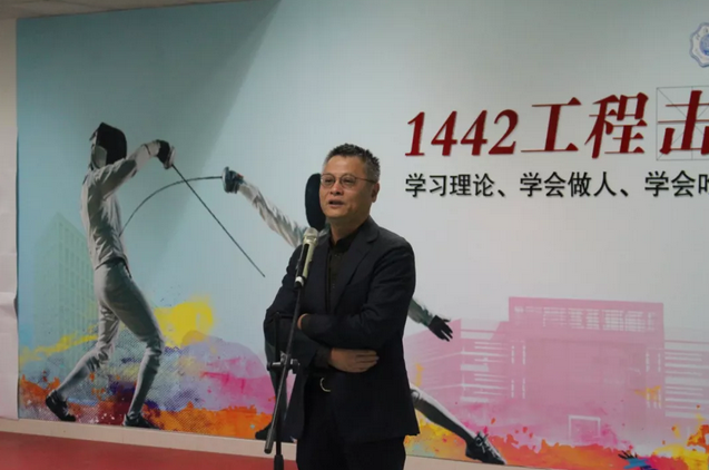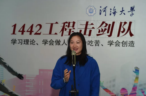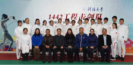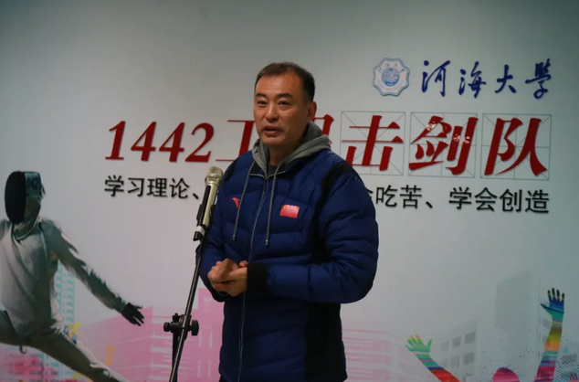 郭继超副书记首先对出席仪式的各位嘉宾表示欢迎,对沿海建设开发有限公司对“1442工程”击剑队的大力支持表示感谢。他指出,我校“1442工程”学生骨干培养模式至今已实施22年,不断改进培养方案,加大培养力度,近年来以培养学生领导力和“亮剑”精神为核心,进一步培养同学们敢于亮剑、顽强拼搏、铸剑砺魂、直面挑战的意志品质。希望以“1442工程”击剑队成立为契机,打造一支政治合格、学习优秀、品德良好、作风过硬、能力素质全面,德智体美劳全面发展的河海学生骨干队伍,带动并激励全校学生奋发有为、共同提高、全面发展。