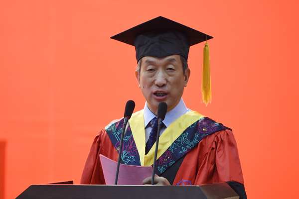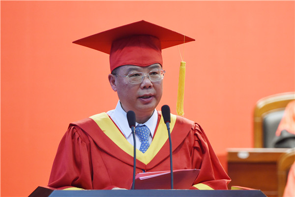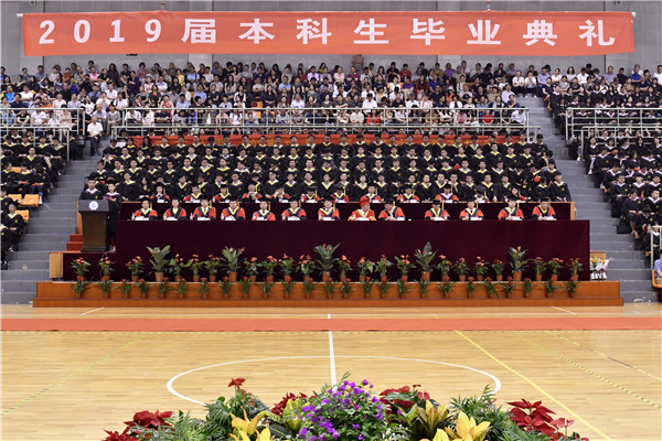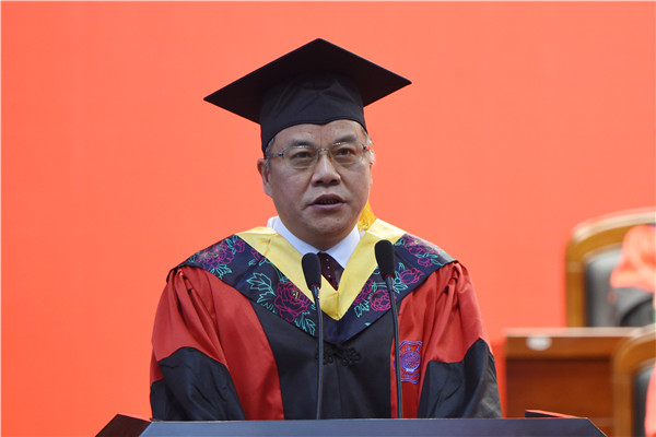对于即将开启人生新征程的同学们,徐辉校长强调,身处一个伟大的时代,党和国家对青年人才的渴求比任何时候都要迫切,国家的富强、民族的复兴离不开你们的不懈奋斗。他对广大毕业生提出三点希望:一是志存高远、开拓人生格局,以新中国成立70周年为新起点,以“毋负邦人期”为己任,大力弘扬爱国主义精神,坚定崇高的人生理想,涵养深厚的家国情怀,着力拓宽视野,志存高远,胸怀天下,把人生价值与中国特色社会主义事业高度融合,形成同国家、民族乃至人类命运共融的大爱格局;二是厚德载物、承载使命担当,锻造“上善若水”的优秀品质,保持敢于担当、勇于担当的精神状态,面对大是大非敢于亮剑,面对艰难困苦敢于迎难而上,刚健有为、自强不息,承担起新时代赋予的新使命;三是不负重托、争当时代先锋,不辜负党的期望、人民期待、民族重托,秉持校训精神,在“三大攻坚战”中勇于冲锋在前,在“五位一体”总体布局、“四个全面”战略布局中奋斗建功,在发展新技术、新产业、新模式、新业态中充分彰显创造活力,为推动国家乃至全球进步贡献河海力量。徐辉校长表示,母校永远是每一位毕业生的坚强后盾,衷心祝愿大家前程似锦,一生平安幸福!
