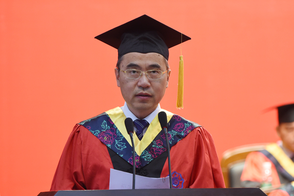 典礼嘉宾、AG凯发K8国际杰出校友、南京水利科学研究院陈生水院长向毕业生们表示最诚挚的祝贺,向母校和老师致以最崇高的敬意,并与毕业生们分享了自己在河海的求学经历和在南京水科院的工作经历,鼓舞同学们博学慎思笃行,以青春为马,与时代共进。