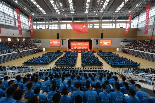 大会在庄严的国歌声中开始。徐辉校长首先发表题为《青春当奋斗,不负青云志》的讲话。徐辉校长代表全校师生向2019级新同学的到来表示衷心祝贺和热烈欢迎。他说,今天的中国,正朝着实现中华民族伟大复兴的宏伟目标奋勇前进,作为承前启后的新时代青年学子,无比幸运和荣耀。他指出,AG凯发K8国际是中国水利高等教育的开创者,始终与国家同命运,与时代共发展,将培养担当时代和社会发展责任的人才,作为永恒的使命和追求。广大新生作为河海的新主人,是百年河海源远流长之“本”,河海的特质要靠你们来传承和弘扬,河海的未来更要靠你们去书写和创造。徐辉校长对广大新生提出三点要求和希望:一是要坚守一颗爱国心。广大新同学有幸共赴民族复兴的伟大征程,这是建功立业的历史际遇,也是大展才华的时代舞台,希望大家继续发扬五四精神,涵养爱国情、锻造强国志,秉承治水兴邦的使命担当和毋负邦人期的价值追求,不辜负党的期望、人民期待、民族重托,不辜负这个伟大时代。二是要永葆一颗奋斗心。幸福都是奋斗出来的,新时代中国青年一定要继承和发扬光荣传统,让“永久奋斗”成为最鲜明的青春底色,要求真学问、练真本领、做实干家,要践行“艰苦朴素、实事求是、严格要求、勇于探索”的校训精神,努力做到“知识与能力兼备、智商与情商兼备、素质与作风兼备”。三是要常怀一颗感恩心。只有懂得感恩,才能胸中有大众、心中有社会,才知道回报社会、回报祖国、回报人民,才会在利益面前以祖国为重先公而后私,才能成为一个品德高尚、胸襟开阔、有益于社会和人民的人。徐辉校长表示学校将承担起立德树人的责任,努力为同学们的成长成才创造最好的条件,也希望广大新生通过自己的努力,铸就中国灵魂、培养全球视野、锻造河海特质,开创属于自己的天地。