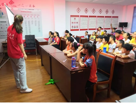 爱心扶贫是精准扶贫工作中的一项重要工作。此次“1442工程”实践团走进池河镇社区留守儿童之家,开展一系列爱心支教活动。实践团的同学们针对低年级小朋友开展了趣味破冰游戏,增进对彼此的了解,针对高年级的同学展开环保知识与新中国成立70周年以来的变化小讲堂,让孩子们对于环保事业以及我们的新中国的发展有更深刻的认识。