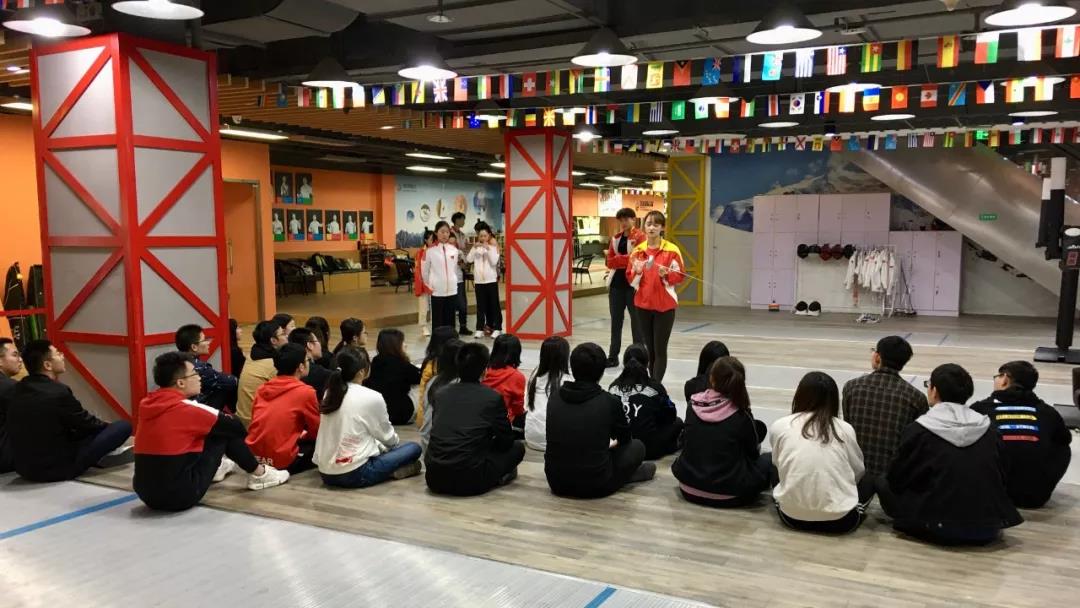教练首先讲述了击剑运动的缘起,并结合比赛规则向学员就重剑、佩剑、花剑三种剑型进行了介绍。通过著名击剑选手栾菊杰、中国剑坛三剑客等击剑先驱的事迹,生动诠释了奋力拼搏,永不言败的体育精神。