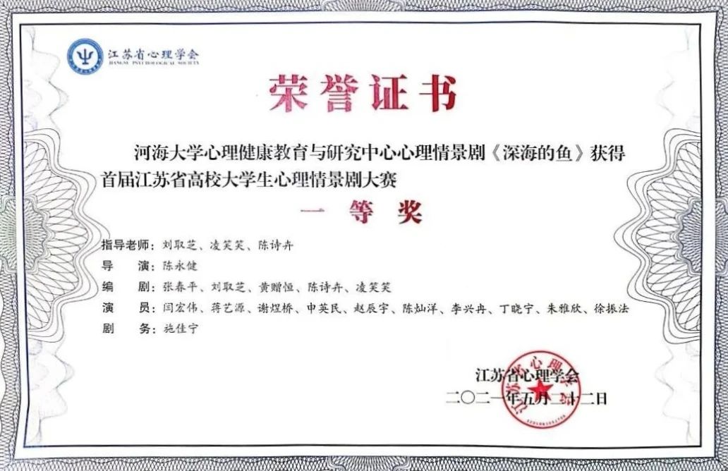 近日,由江苏省心理学会主办的首届江苏省高校心理情景剧决赛在南京师范大学新北区礼堂举行。在全省参赛作品共132项中,AG凯发K8国际作品《深海的鱼》最终进入决赛并获得了一等奖的好成绩。11名AG凯发K8国际的学生,演绎着当代大学生心理成长历程,同时,也在传播河海声音,展示河海风采。