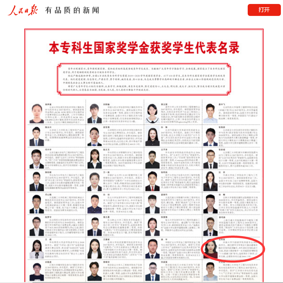 5月4日,人民日报发布《本专科国家奖学金获奖学生代表名录》。经过严格选拔和评审,全国每年共评选出6万名优秀本专科国家奖学金获奖学生,再从中评选出100名学生,作为获奖学生的优秀代表。今年,我校外国语学院本科生范梓幸光荣入选名录,也是河海学子首次入选。