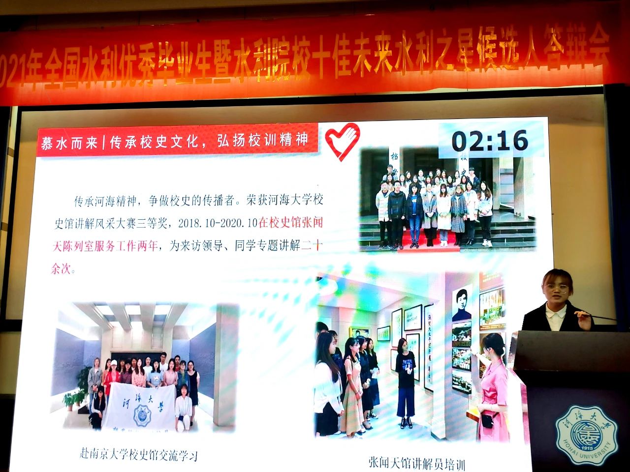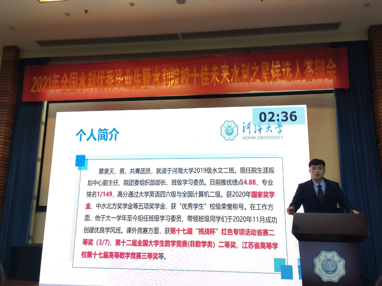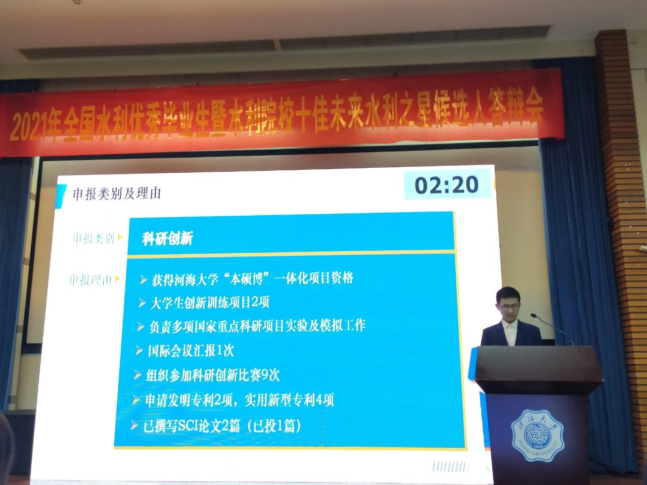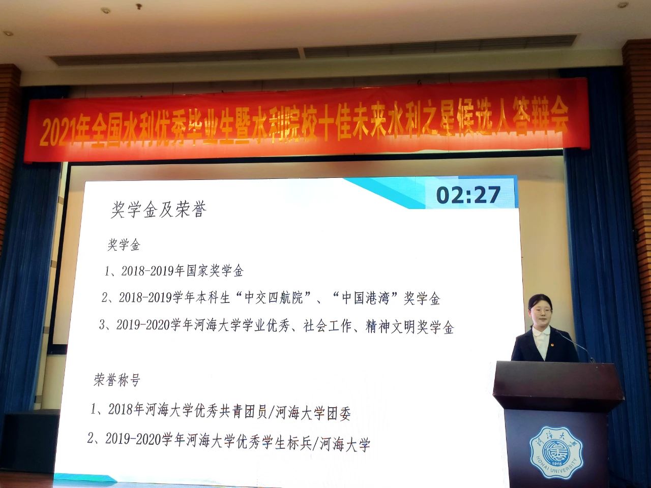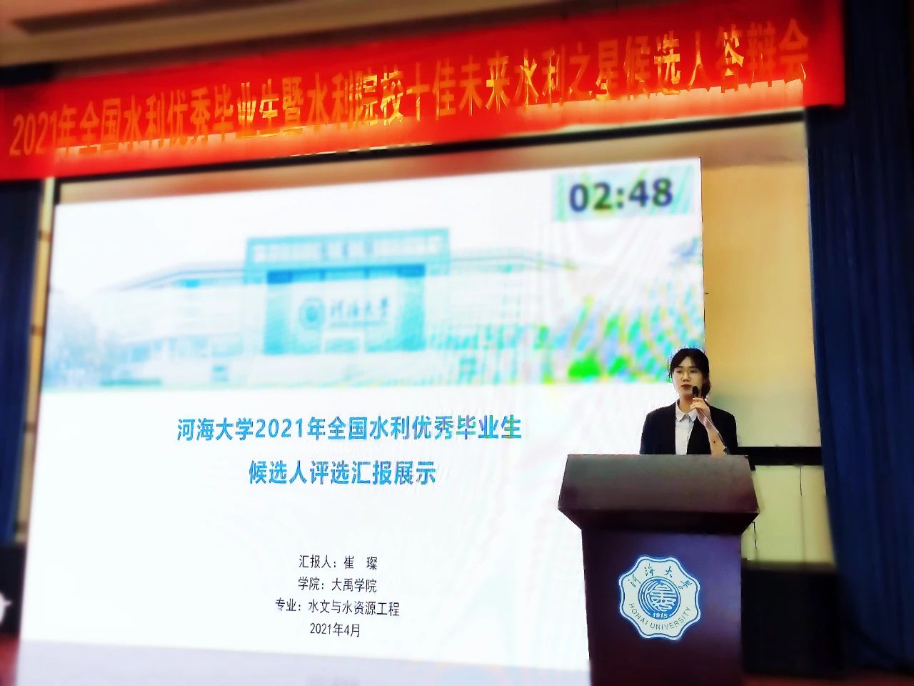 此前,根据评选要求,本着公平、公开、公正、择优的原则,各学院认真组织了评选和推荐工作,共推荐了4位水利优秀毕业生候选人以及12位十佳未来水利之星候选人参与答辩展示。