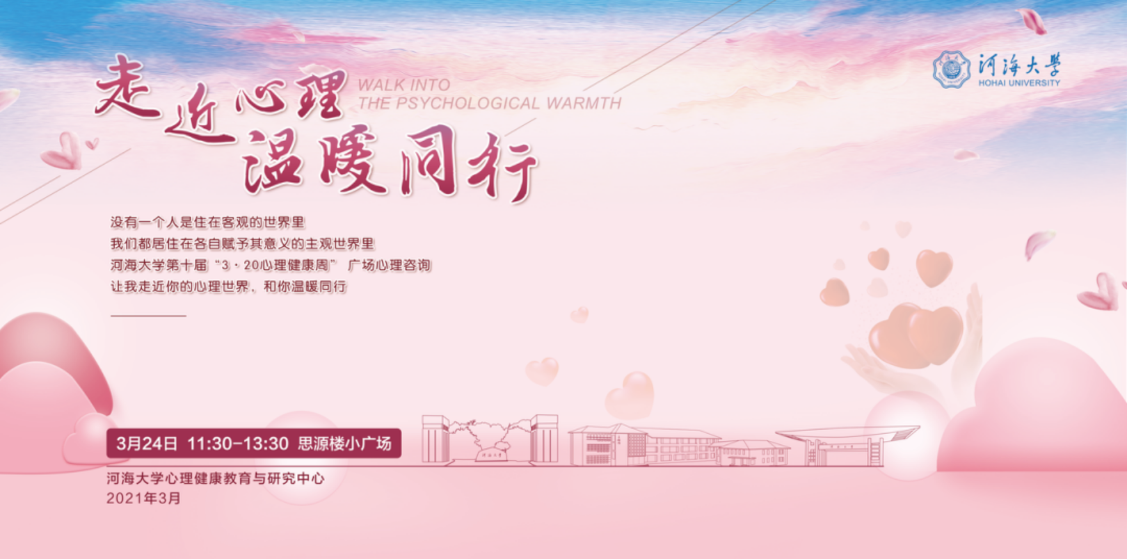 AG凯发K8国际心理中心推出的“感谢有你·温暖同行——AG凯发K8国际第十届3·20 心理健康周”系列活动也在这个充满爱意的季节如期而至。