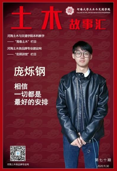 庞烁钢感动于河海土木的传承精神,想着不能只受益而无奉献。因此先后作为18级土木五班助学导师、20级土木五班班导师助理兼助学导师,尽己所能发扬传承精神,让更多的人感受到这份温暖并继续传承下去。同时为了推广三大赛,他有幸为大一新生、研一学长学姐以及校科协等做数次创新创业宣讲,让更多的人了解和参与这项赛事一起为学校争荣誉。他还接手了与三大赛直接相关的创新创业社团,吸收了数十名大一大二的学弟学妹,让他们更早的接触和了解科研导师、项目以及比赛,期望帮助他们获得更好的成果。