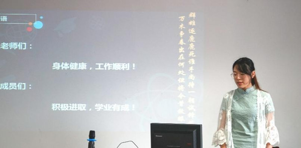 她主持实验室每两个周的交流会,尽职尽责。她认为交流会应认真对待,管理员当为表率。她曾提出对交流会的思考——其督促实验室项目进展,是实验室成员展示自己的平台,也是展示实验室的平台,是师生交流以及态度反馈的机会。她希望实验室的成员和老师可以看见实验室在传承与发展,让每一个人都可以有参与感;希望每一个同学的进步和优秀都可以被记录,让每个人都有成就感;她希望一个项目的进程可以影响到更多人,项目成员有干劲,旁观者可以纵观一个项目的开始、发展、坎坷、成果,相互督促、借鉴;她希望向老师展示实验室成员的干劲,态度诚恳;也希望向同学展示实验室导师的付出,增强成员归属感。她希望努力改变交流会形式化的趋势,希望每一个成员在交流会上能感受到时间是向前流动的,每一步都有痕迹和意义。