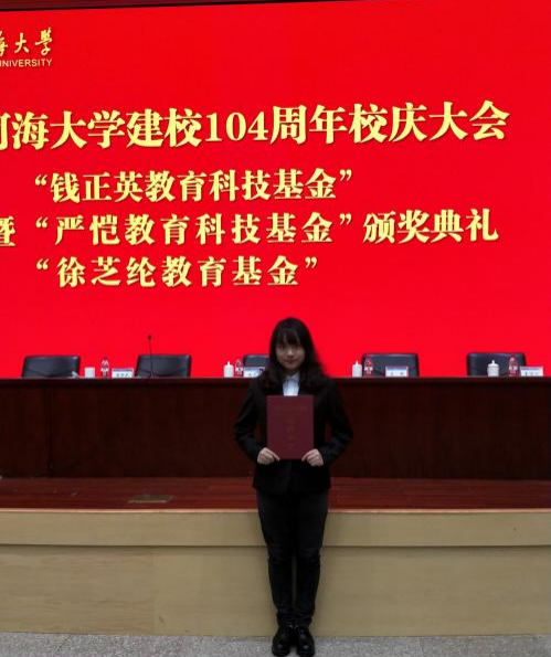 门捷列夫曾说“没有加倍的勤奋,就既没有才能,也没有天才”,并非天才的她,选择付出加倍再加倍的努力以获得才能。大学四年,刘淑薇同学从未对学业有半点的松懈,用勤奋成为时间的主人。早早起床抢占早课前排,下课便钻进图书馆中整理课堂笔记、理清课程脉络,也常常夜里奋战,顶着台灯练习代码、自学课程。妈妈常常不解为什么她的大学学业比高三还重,她说道“大学以前的知识是打基础,只有地基牢靠了才能筑高楼。大学中的知识就是在筑楼呀,我有多努力,我的楼就能有多高!”在这份筑高楼的信念下,她大学四年的学习绩点为4.94/5.0,综合排名专业第二,也曾在大二上学期获得5.0的满绩点,拿到过国家奖学金和国家励志奖学金,并成功拿到了推免生的名额。在大学期间一步一脚印的不断积累,让刘淑薇同学在全国大学生数学竞赛和江苏省数学竞赛中都获得了一等奖,还让她参与的四篇专利成功被受理。校训中的16个字一直影响着她的大学四年“艰苦朴素、实事求是、严格要求、勇于探索”,她一直坚信尽管努力就好,尽管拼命努力就好,时间会证明一切,正所谓不是每一次努力都有收获,但是每一次收获必须努力。