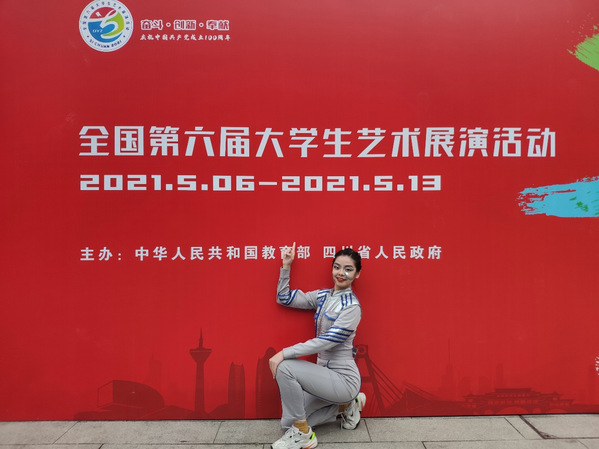 致力于艺术服务社会的工作中,不仅能提升自身工作能力,从服务老师、同学的过程中获得快乐,还能以美育人、以文化人,进一步增强河海学子的文化自信。2019年4月,甘婧旖不负众望承担起了舞蹈团团长的重任,她积极带领团员们进行训练,以身作则,要求高质量完成每一处细节,提升团部专业水准,为更好完成新阶段工作打下基础。在任16个月,打造舞蹈团精品剧目8部,参与编创歌伴舞剧目2部,带领团员们参与校内外演出8次并受一致好评。疫情期间,组织舞蹈团“艺”起云打卡活动,保持团员们的专业水准;策划AG凯发K8国际第三十二届校园文化艺术节“汇聚同心 青春能量”创“艺”大赛,丰富同学们的文化生活,促进学生全面发展。她积极推动团员们开阔视野,与校内外艺术群体进行专业交流,一方面保持与南京各高校艺术团的联系,曾受邀观摩东南、南航、药科大文艺演出,除此,鼓励团员观摩各大文艺演出,如:舞剧《记忆深处》、《永不消逝的电波》、《孔子》等;另一方面加强与艺术团其他各表演分团的交流联系,共同推动校园文化建设蓬勃发展。