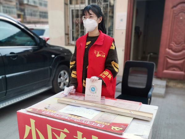 2020年初新冠肺炎疫情突如其来的爆发,在抗击疫情中全国广大党员干部经受了淬炼、得到了成长,刚刚成为预备党员的她,同样感受到强烈的使命感,毫不犹豫的报名了社区的志愿者,共同守护这片家园。