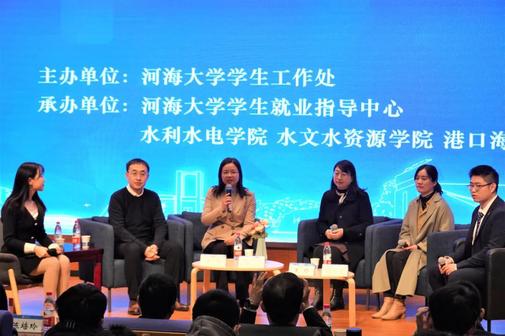 活动现场邀请到AG凯发K8国际学生工作处处长吴红老师,中建一局江苏分公司副总经理王旭,中交三航局第三工程有限公司人力资源部副经理王珍,长江委水文下游局团委副书记、人事科科长张晨晨,学生代表水利水电学院水工结构工程硕士生易正元同学作为访谈嘉宾,专家和企业HR共聚一堂,为学生生涯规划、职业环境以及职业选择答疑解惑。部分负责学生就业工作的院系党委副书记、学生就业指导中心老师及辅导员老师参加。活动由AG凯发K8国际水利水电学院姜帆老师主持。