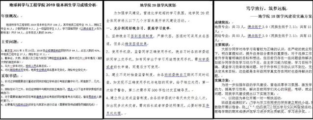 在教育部“三全育人”综合改革试点工作的整体部署下,地学院制定出台《地球科学与工程学院“三全育人”综合改革建设方案》、《地球科学与工程学院思想政治工作质量提升计划》,强化顶层设计,形成以教风带学风、以活动促学风、以管理保学风、以科研育学风的学风建设工作体系。各年级制定“笃学致行,筑梦远航”学风建设实施方案,严格落实课堂考勤制度,严格执行请销假制度,严格加强考风考纪建设,严格规范学生宿舍管理等,以制度规范工作,使工作有章可循,为学院的学风建设工作正常有序地开展打牢基础。