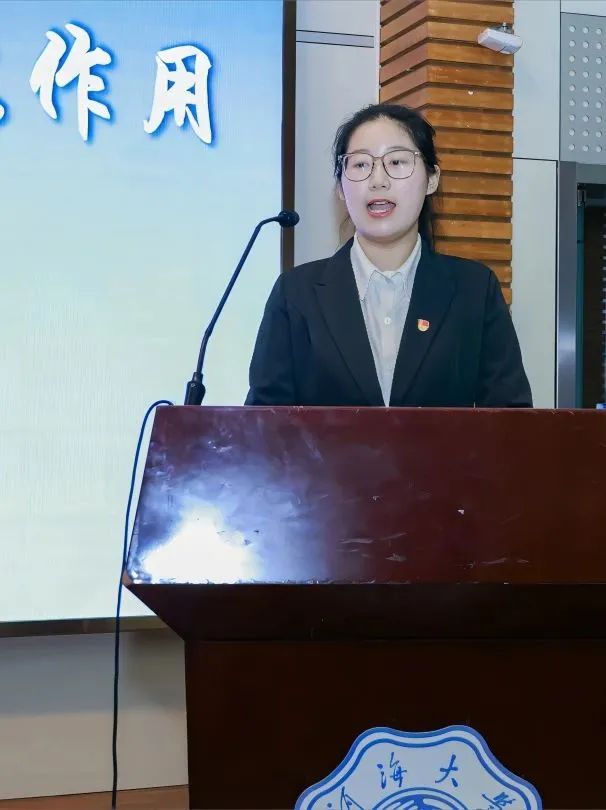 她从一个支部启航,作为团支书,带领团支部获评江苏省“千优活力”团支部,主讲信仰公开课获评江苏省示范课。利用同龄人优势,把功课做在青年人、代入感上,共形成教案80000余字,PPT400多页,原创视频5部,被校内外报道50余次,成为党史学习教育的生动案例。同时,她致力向万名青年覆盖,作为校团委组织部副部长,累计服务新生、青马工程学员、各学院团干部等超1万人。她心怀信仰,用青春书写壮阔格局;脚踏实地,用行动践行初心使命。