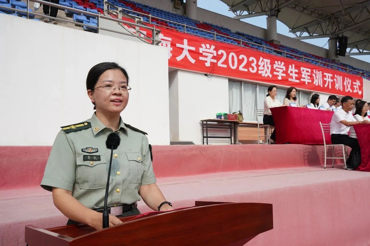 9月11日,我校举行2023级学生军训开训仪式。中国人民解放军空军某部队中校王瑞,学生军训旅政委、校党委副书记郭继超出席仪式。学生军训旅副政委、人武部部长吴红主持大会。