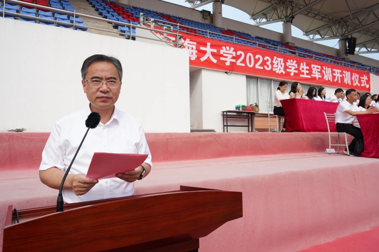 上午9点,军训开训仪式在雄浑庄严的国歌声中开始。学生军训旅政委、校党委副书记郭继超代表学校党委、校行政向承训部队及全体承训教官致以崇高的敬意和衷心的感谢。向全体受训学生提出三点希望和要求:一是要坚定理想信念,铸牢爱国之魂。要主动担负起实现中华民族伟大复兴中国梦的历史责任,争做有理想、敢担当、能吃苦、肯奋斗的新时代好青年;二是要磨炼坚强意志,实践报国之行。要积极发扬“亮剑精神”,不断激发潜能斗志,以勇敢顽强的过硬作风和团结克难的战斗精神认真完成每项训练任务,努力提升个人综合素质;三是要强化使命担当,砥砺强国之志。要争当伟大理想的追梦人,争做伟大事业的生力军,在中国式现代化建设中挺膺担当。