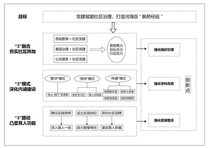 2.目标融合同向发力,深化基层治理。聘请多名专业教师担任社区功能型党支部书记,党员干部深入社区开展调查研究,明晰社区管理职责、提升建设目标和育人实效。开展“我为组织做件事”“党员服务先锋岗”等活动,强化社区党支部、党小组自我管理自我服务能力。
