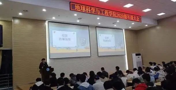 为进一步提高广大同学的反诈意识,增强对诈骗犯罪的辨别和应对能力,全力打造平安、和谐校园环境。地球科学与工程学院以班会、年级大会、讲座宣传预警等多种形式开展防诈骗宣传活动。