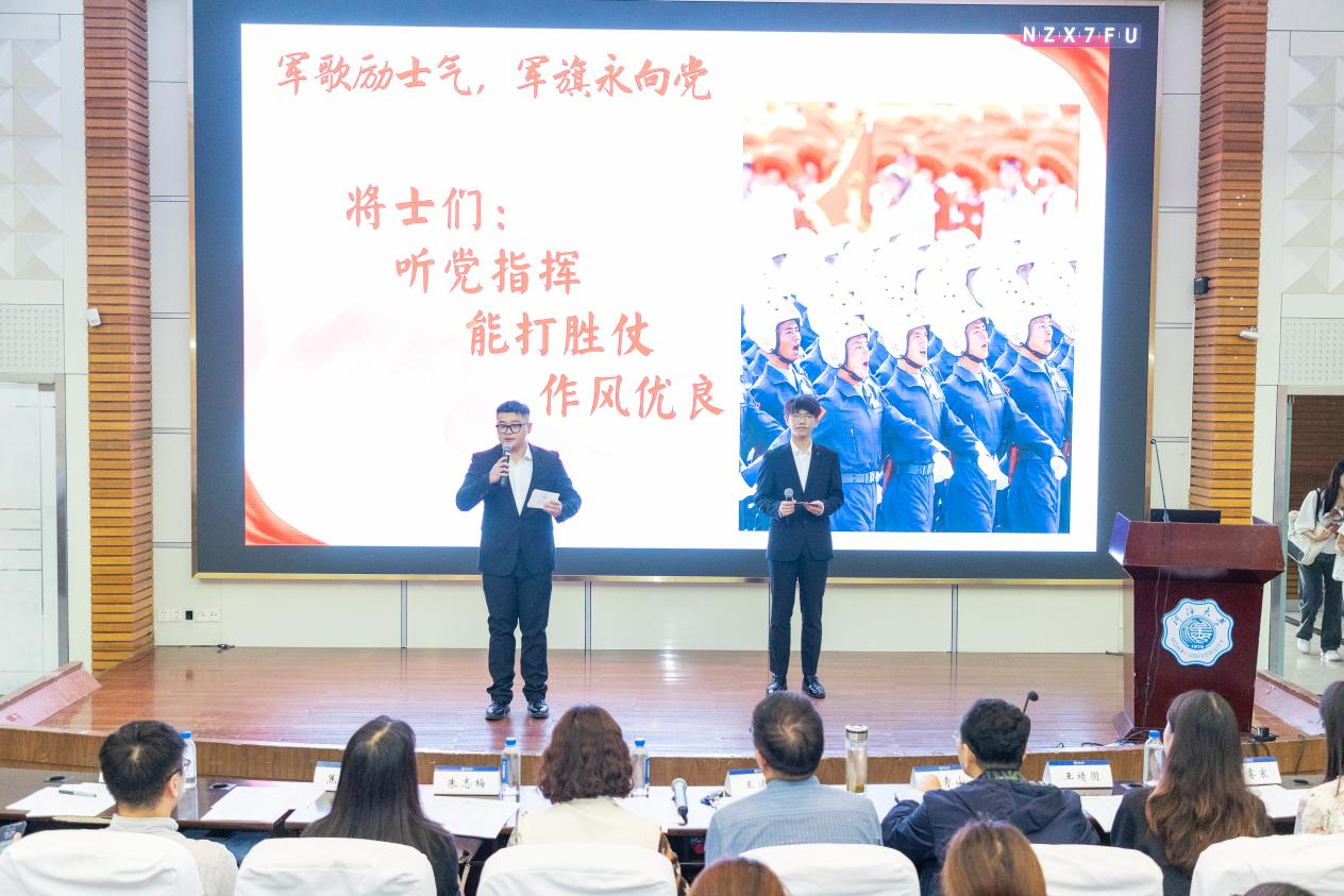 江苏省军事课教学指导委员会副秘书长、军事理论教研室主任王建中,人武部副部长、学生处副处长乔熙,保卫处副处长吴青山,公共管理学院党委副书记朱志梅,公共管理学院焦庆中,校团委王靖圆,人武部李淑明,公共管理学院张睿宸出席本次活动并担任评委。