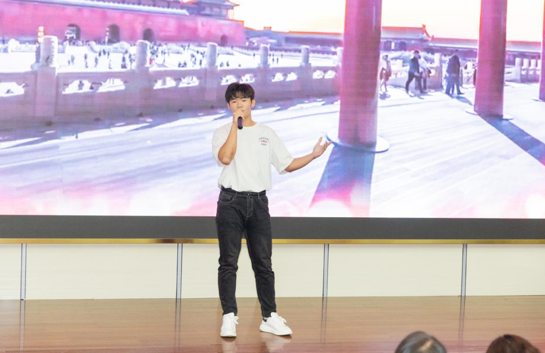 选手们专注坚定,演讲铿锵有力,赛场氛围也不断升温。随着第18组选手演讲完毕,公共管理学院2023级播音与主持艺术专业的崔铭洋同学为大家带来歌曲《我爱你中国》,他用嘹亮的歌喉唱出了当代青年的青春活力。
