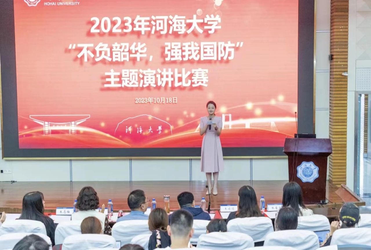 参赛的18组选手按照赛前抽签顺序依次上台演讲,他们或慷慨激昂,或娓娓道来,围绕国防故事和国防精神讲述自己的经历与感悟。从聚焦抗美援朝战争胜利70周年,到介绍为祖国国防事业抛头颅洒热血的战士,从对自己携笔从戎、参军报国的讲述,到对国家网络空间安全知识的科普……从过去,到现在,再到未来,变化的是时代,赓续传承的是炙热的国防精神,是当代青年为祖国国防建设贡献自己力量的决心,彰显了河海学子的青春风貌和担当精神。