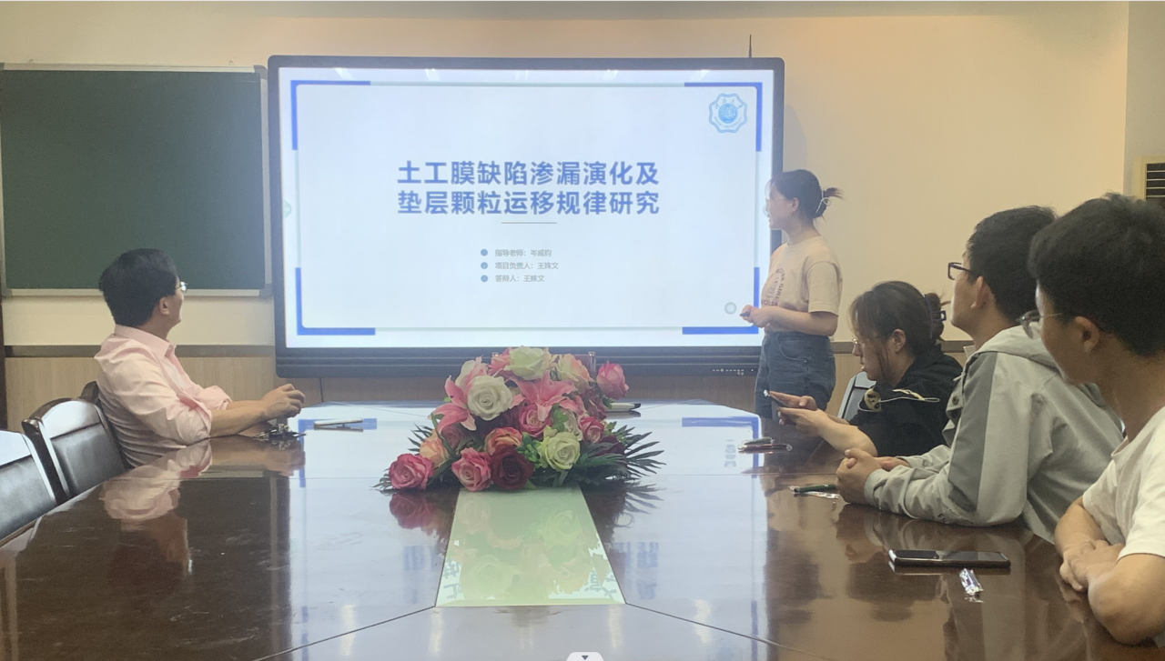 同时,她作为项目负责人主持的国家级创训《土工膜缺陷渗漏演化及垫层颗粒运移规律研究》在今年6月以优秀结题。在项目立项前,王姝文同学提前一年半与导师联系,进行了多次交流,针对项目申报书进行了十余次的修改,并且多次模拟立项答辩,力争完美,展现出了极大的科研热情。