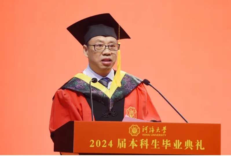 杨桂山还对广大毕业生提出三点希望:砥砺报国之志,筑牢成长根基。面对纷繁复杂的国际形势,每个人的成长和生活都与家国命运紧密相连。希望同学们继承和发扬老一辈河海人“治水兴邦、天下安澜”的家国情怀,立大志、行大道,主动把青春奋斗融入党和人民事业,在与国同行、与国同强的步伐中,奋勇争先,开创未来。勇于开拓创新,永葆奋进之姿。身处伟大变革时代,化危为机,驭势笃行,靠的是具备原始创新能力的卓越本领。希望同学们始终保持锐意创新的勇气、敢为人先的锐气、蓬勃向上的朝气,聚焦独创首创、痛点难点,争做新时代“新领域”里的开拓者、新征程“新赛道”上的引领者。勤于学习实践,积蓄前进动能。真正的成功没有捷径,唯有与时俱进、因势而新,方能赢得一席之地。希望同学们始终牢记“学无止境”,要让勤奋学习成为青春远航的不竭动力,练就属于自己的真本事、真本领,在不懈奋斗中实现卓越引领,在各自岗位上做出不凡贡献。他表示,母校永远是每一位毕业生的坚强后盾,衷心祝愿大家鹏程万里,前程似锦,一生幸福。