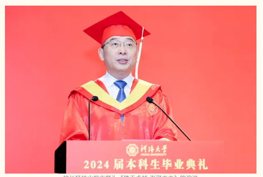 杨桂山说,过去的四年,正是在同学们的共同参与和不懈努力下,学校高质量发展进入快车道,迎来了诸多具有里程碑意义的高光时刻:再次入选新一轮“双一流”建设高校、“水资源工程”跃居软科世界一流学科排名全球第一、隆重庆祝华东水利学院建院70周年、“河海星”闪耀苍穹、常州新校区于长荡湖畔拔地而起、胜利召开第十四次党代会……学校正以时不我待的昂扬姿态,奋力开创世界一流特色研究型大学建设新局面。