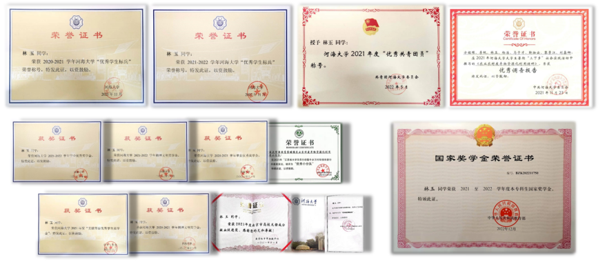 “人生因奋斗而精彩,青春因拼搏而亮丽。”回顾大学以来的漫漫时光,林玉同学成长了许多也收获了许多。她相信一分耕耘一分收获,也牢记河海的校训以及自己的初心。作为一名大四的普通学生,她深知自己还有许多进步的空间。在今后的学习、生活中,她仍旧会严格要求自己,向优秀的同学看齐,毫不松懈地朝着自己的目标迈进,为河海、为国家贡献自己的青春力量。