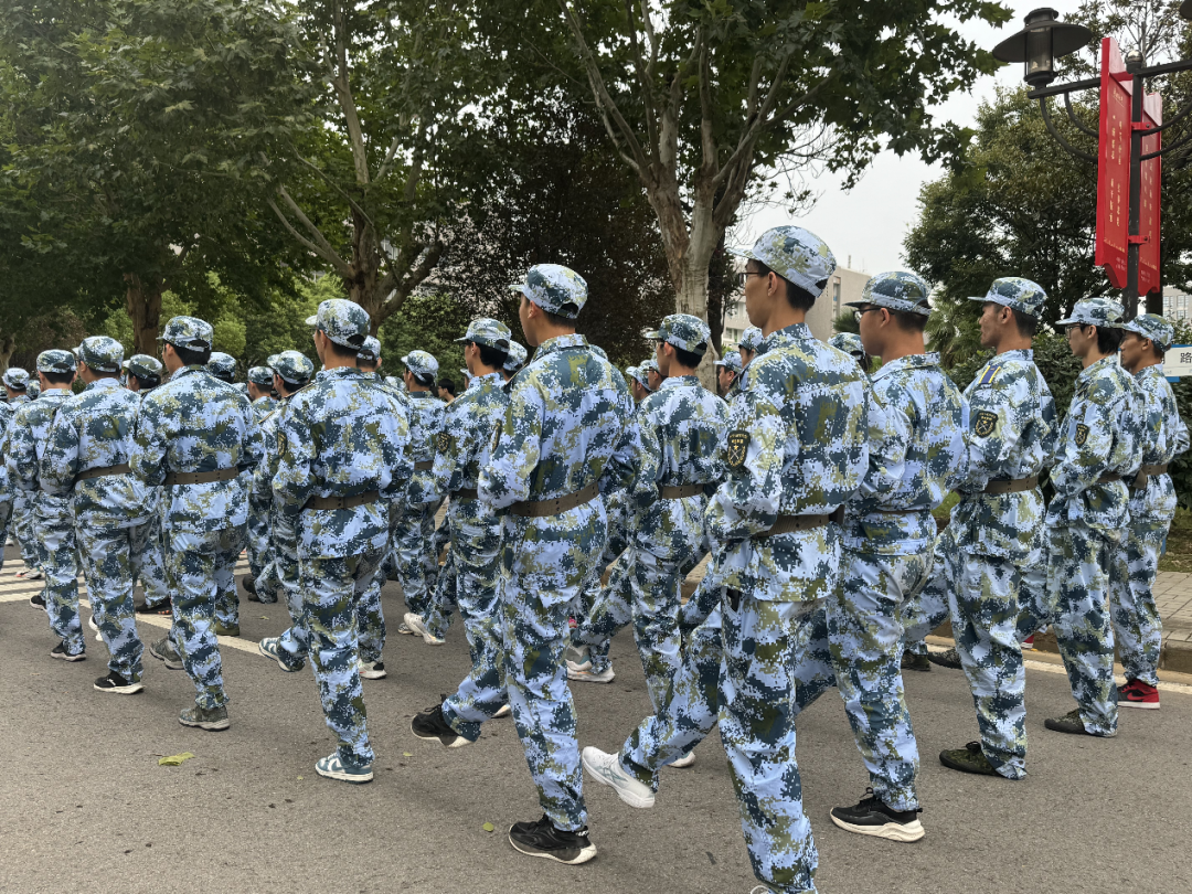 同学们进行着站军姿、走正步、队列变换等高强度训练