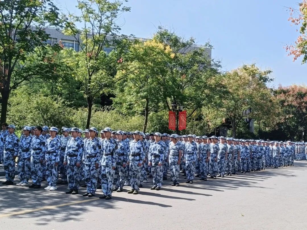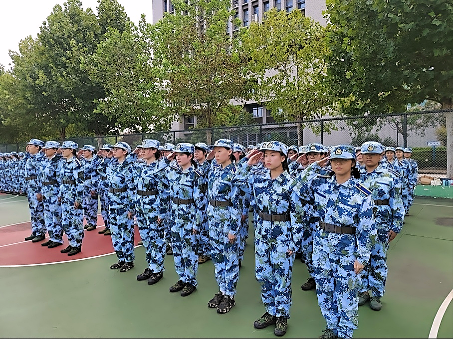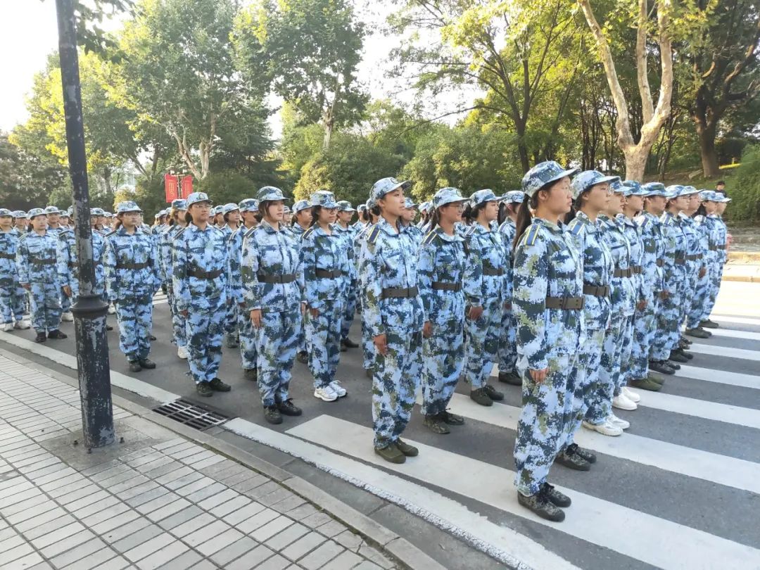 杳霭流玉,有学生飒爽英姿,军姿昂扬