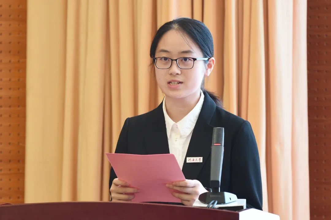 “严恺教育奖”获得者数学学院教授郑苏娟,“徐芝纶教学奖”获得者马克思主义学院副院长、教授李栗燕,“钱正英奖学金” 获得者港口海岸与近海工程学院2021级本科生张小恬作为获奖代表发言。