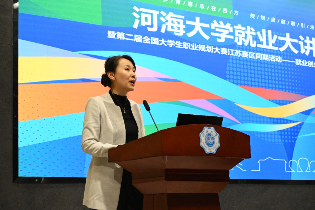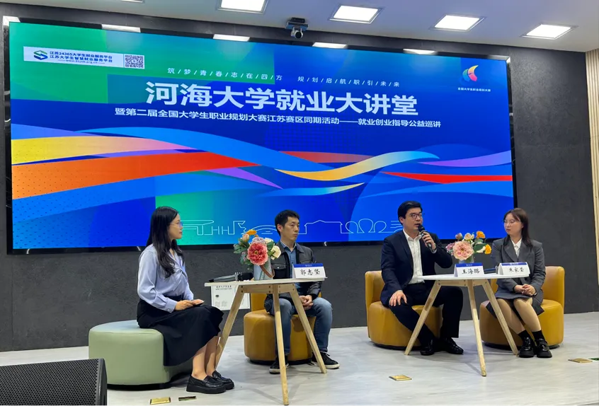 2024年11月14日下午,AG凯发K8国际常州新校区21号楼101报告厅内济济一堂,一场别开生面的就业大讲堂暨第二届全国大学生职业规划大赛江苏赛区同期活动——就业创业指导公益巡讲在此成功举办。本次活动由AG凯发K8国际学生就业指导中心精心筹备,旨在促进高校毕业生更高质量充分就业,引导青年学生发挥专业所长,投身重点领域、重点行业。活动邀请了中国水利电力对外有限公司人力资源部副总经理王海璐、工程管理项目二级主管朱家莹,中建东方装饰有限公司科技与设计管理部执行经理郭志坚参加,AG凯发K8国际学生就业指导中心主任王璐主持,为在场的同学们带来了精彩的分享。