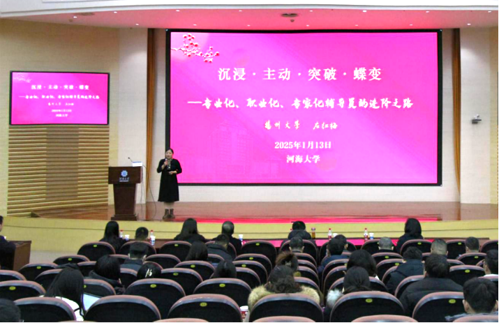 为提升辅导员队伍的专业素养和工作能力,为学生工作注入新的活力,2025年1月13日,我校举办了2025年度第一场辅导员专题培训。本次培训由学生工作处王方处长主持,邀请全国最美辅导员、南京大学党委学工部副部长李兴华副教授和全国辅导员名师工作室负责人、扬州大学医学院党委副书记左红梅教授做作专题报告。